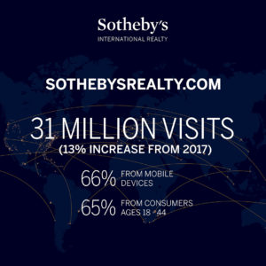 As the first company to launch and implement a virtual staging augmented reality app virtual home viewing, SIR set ourselves apart as digital trailblazers with Curate. Millions of viewers experienced homes from around the world on sothebysrealty.com through immersive 3D virtual realty tours, high-definition videography, high-resolution photography, and lifestyle search. The site saw a 13 percent increase in visitors from 2017 gaining 31 million visits, 66 percent of which were from mobile devices. The majority of visitors, 65 percent, were between the ages of 18 and 44. This data provides invaluable insight into the desires and habits of our audiences.