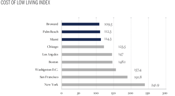 Strong Economy: As Florida strengthens its economy, especially in South East Florida, largescale companies are continuing to relocate their headquarters to the state. U.S. companies are building Latin America and Caribbean headquarters, European companies are choosing South Florida to tap into the Americas and Latin American corporations are entering the U.S. from South Florida and Miami due to its strong position in the hospitality sector. This has driven Miamis reputation as one of the most cosmopolitan cities in the country with 51% of the total population wasnt not native to Miami. This diversity factor has led to a refreshing splash of culture to the region.