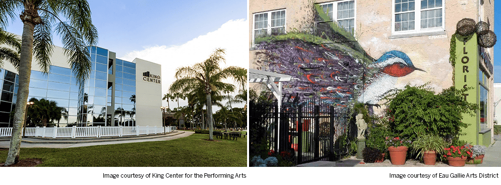 Historic Downtown Melbourne and the Eau Gallie Arts District are the city’s cultural anchors, brimming with boutiques, galleries, and large-scale murals (a popular mural trail draws visitors year-round). Downtown hosts major events such as the Melbourne Food & Wine Festival, Halloween celebrations, and Candlelight Shopping, while Wickham Park stages beloved gatherings like the Melbourne Art Festival.
